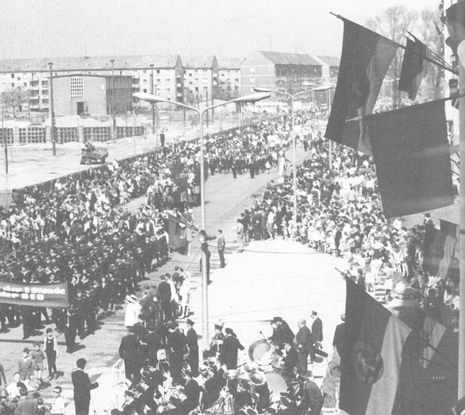 Seit 1975 wurde verstärkt Wohnungsbau mit elfstöckigen Häusern um eine unbefestigte Sandfläche betrieben, die - entsprechend damaliger Vorstellung - als „Aufmarschplatz" bei „gesellschaftlichen Höhepunkten der DDR" vorgesehen war. Brigitte Reimanns Ehemann Hans K. wohnte in dem Haus „Magistrale" 49 (heute: Bautzener Allee). Die Fenster der Wohnung blickten genau auf den „Festplatz", das leere „Stadtzentrum", auf dem Rummel und Aufmärsche stattfanden.